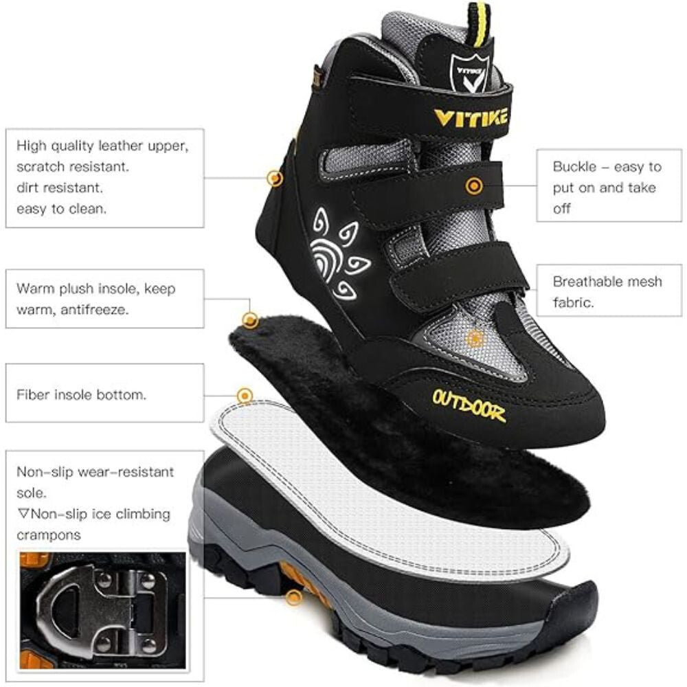 - Měkký a vysoce kvalitní syntetický kožený svršek a síťovina pro odolnost a pohodlí. Boty odolné proti vodě, větru a sněhu.