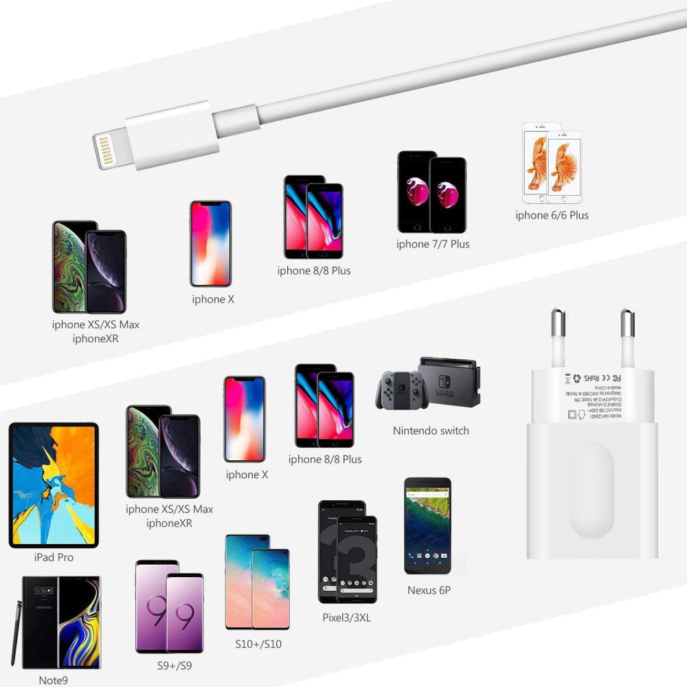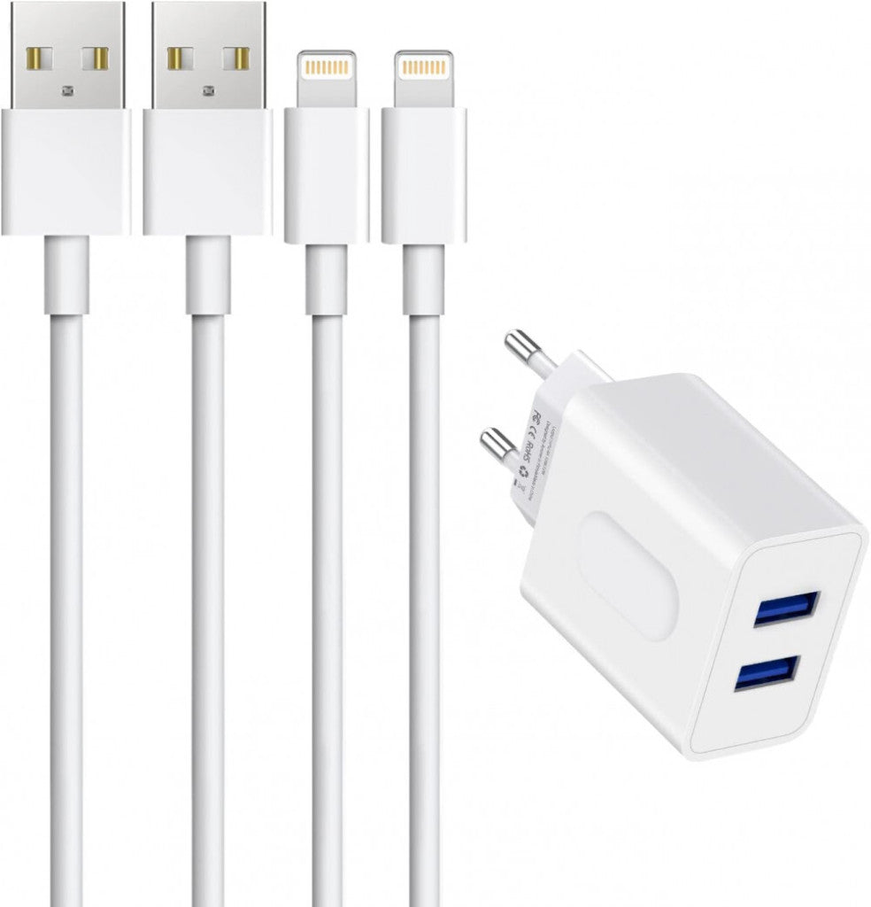 - Amoner 2-Port USB-A Nástěnný Nabíjecí Adaptér, 2 ks Lightning Kabelů pro Apple Zařízení