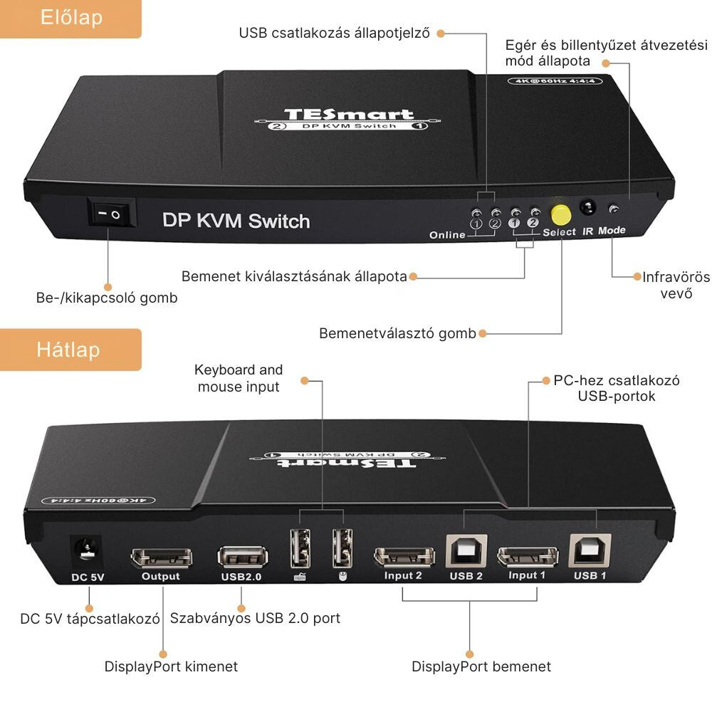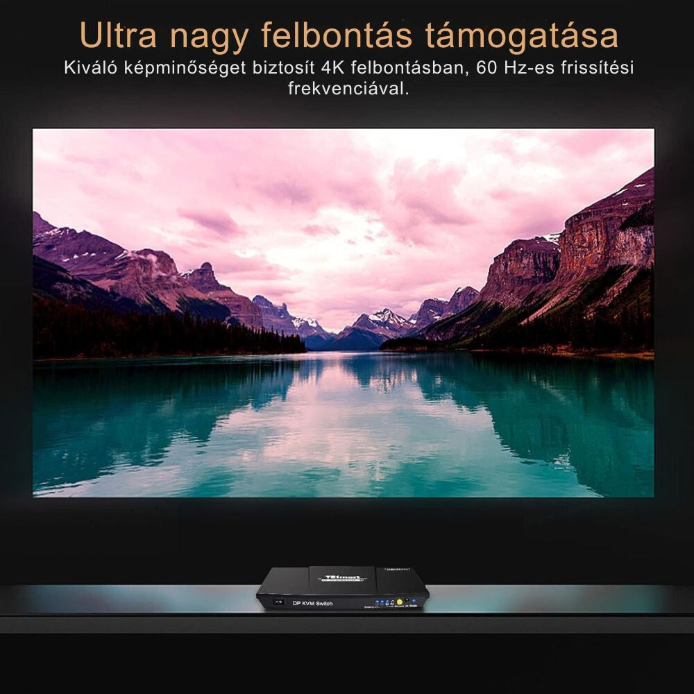 TESmart 2portový DisplayPort KVM přepínač umožňuje ovládat dva počítače s DisplayPort připojením pomocí jediné klávesnice, myši a monitoru. Ideální řešení pro kanceláře, domácnosti a profesionální prostředí, kde je potřeba rychlé a stabilní přepínání mezi více PC.