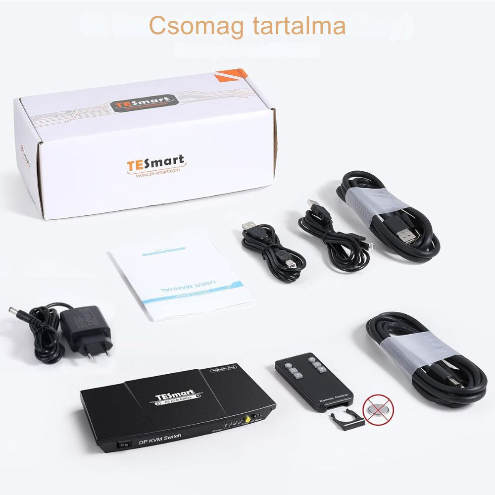- 1 ks TESmart 2x1 DisplayPort KVM přepínač- 1 ks DC 5V napájecí zdroj