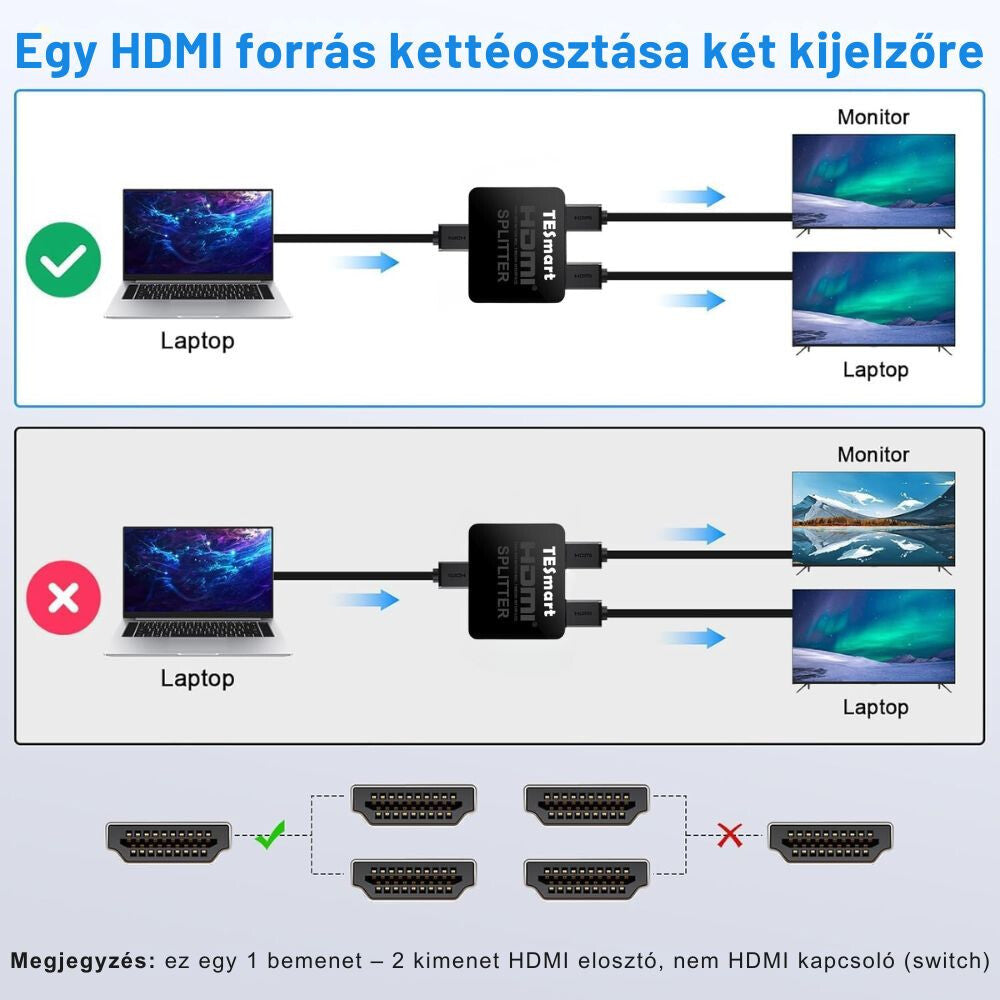 - TESmart HDMI rozbočovač 1x2 – 4K@60Hz HDMI 2.0 Rozdělení signálu, Zrcadlené zobrazení