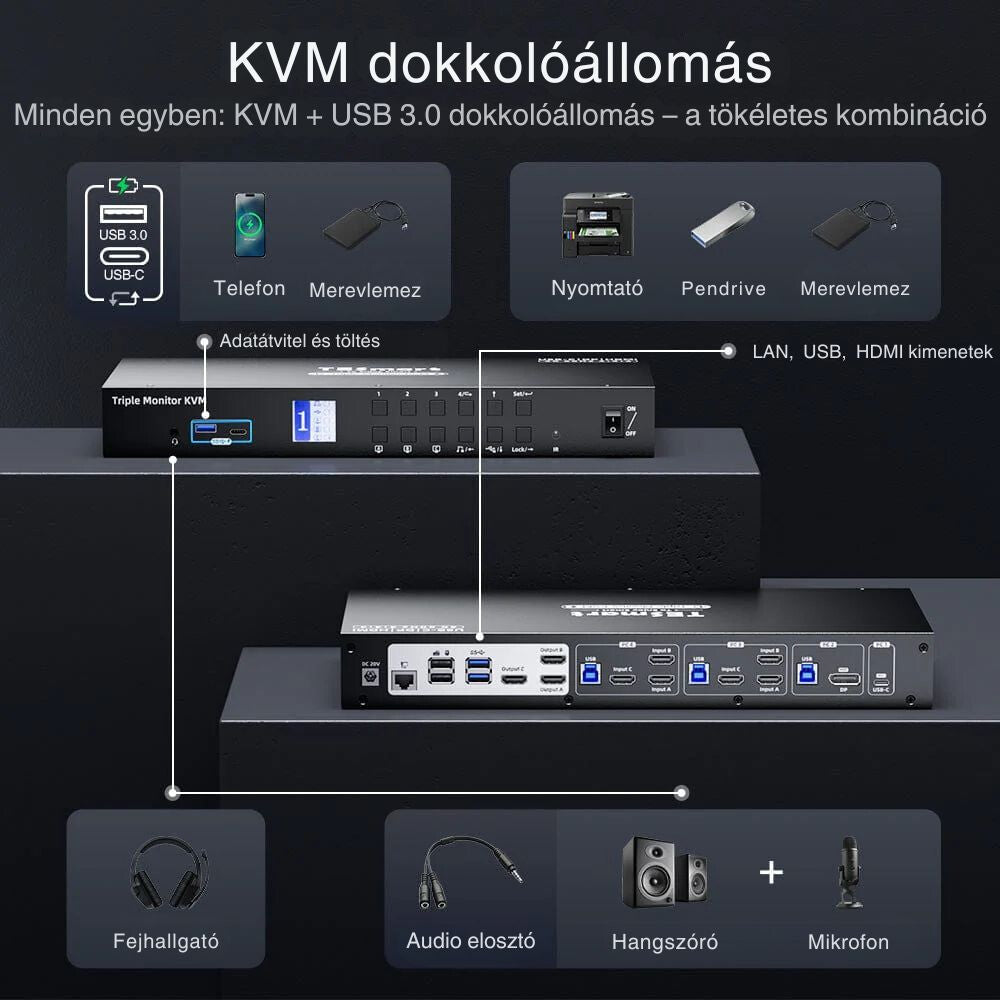 - Tesmart MST KVM dokovací stanice pro 3 monitory, 4K 60Hz, EDID - 1 notebook + 3 počítače