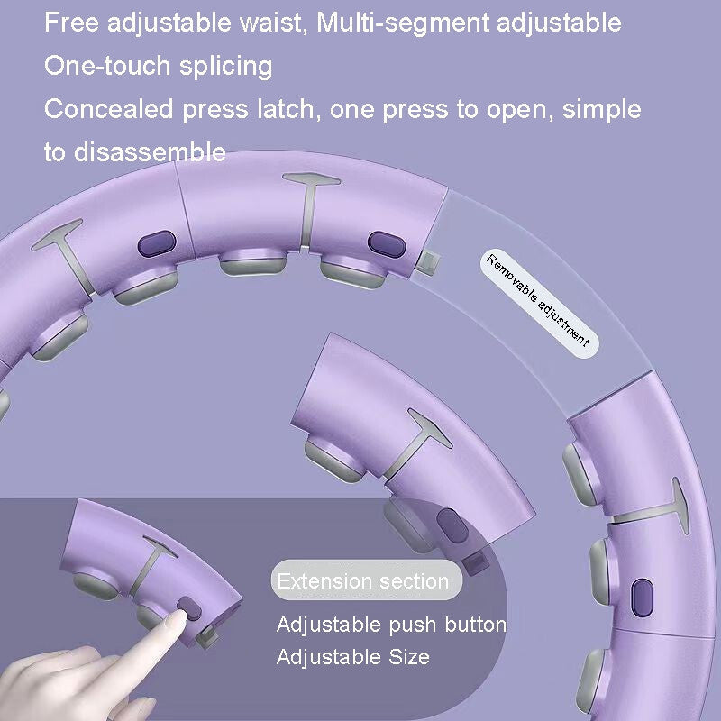 Obruč má jednodotykovou montáž, která usnadňuje použití i skladování. Masáž a gravitační závaží společně zvyšují spalování tuků a efektivitu cvičení, přičemž poskytují příjemný zážitek.