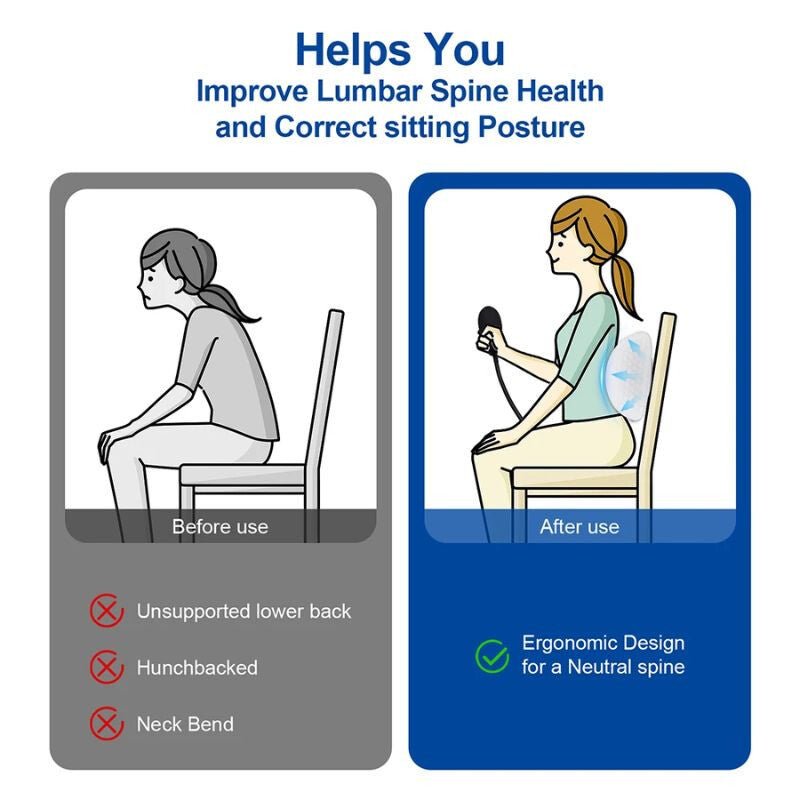 - Pumpovací ortopedický bederní opěrný polštář s paměťovou pěnou je ideální volbou pro všechny, kteří tráví delší dobu sezením v kanceláři, autě nebo doma a chtějí si zpříjemnit každodenní život. Díky ergonomickému designu dokonale kopíruje linii bederní části a zad, čímž pomáhá předcházet napětí a zlepšuje držení těla.