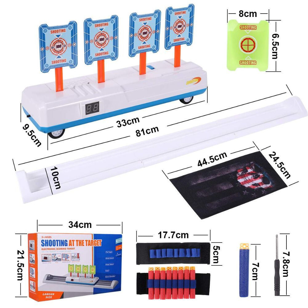 Bodovací terč je citlivý, vybavený 4 běžnými a 4 světélkujícími terči, které lze použít pro noční hru. Pokud zasáhnete všechny čtyři terče, bodovací terč se automaticky resetuje a přidělí body.