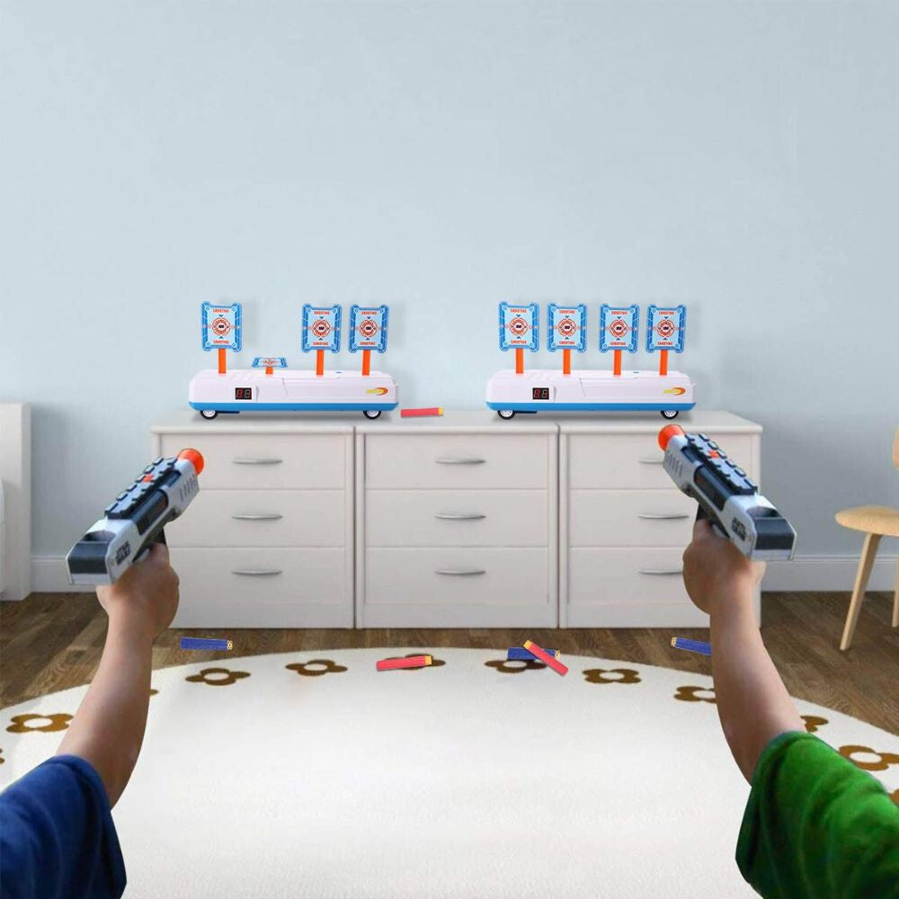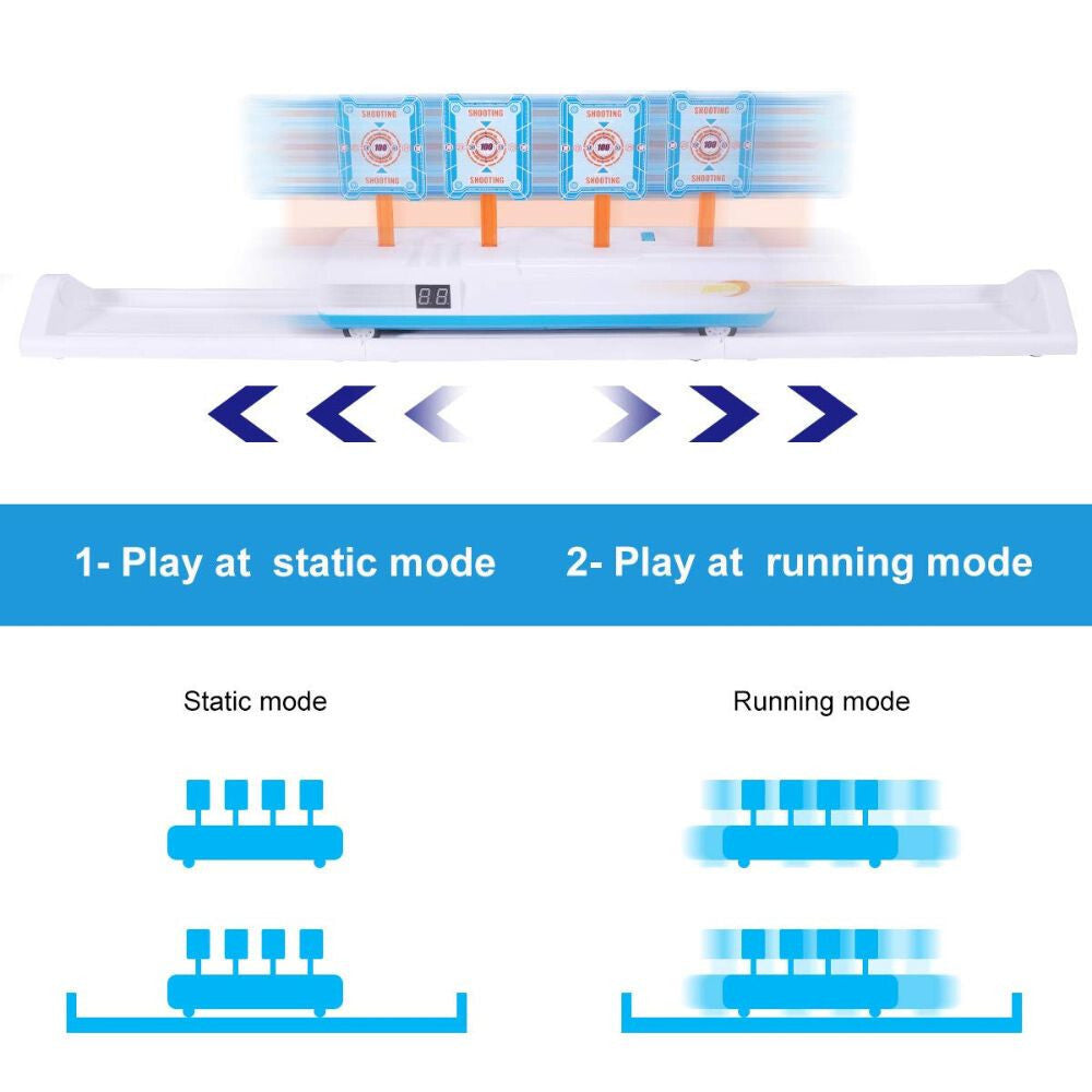 - Dva herní režimy: terč má dva režimy, pohyblivý a statický. Pohyblivý režim ztěžuje střelbu na cíl. Terč je vhodný pro všechny pěnové kuličky, šípy a kuličkové pistole.