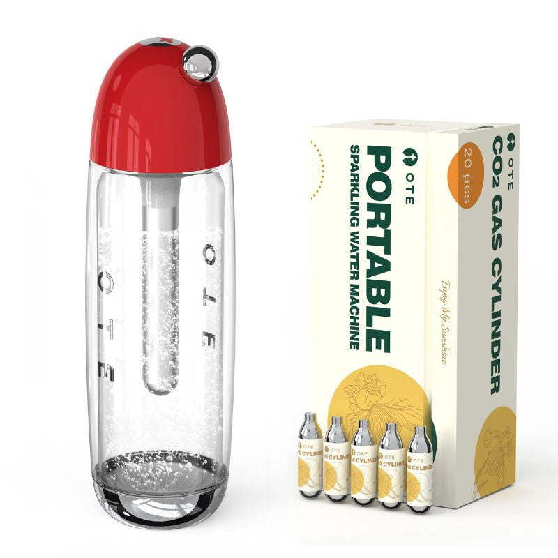 - Přenosný OTE sodobar je ideální volbou pro všechny, kdo chtějí doma nebo na cestách připravovat zdravé a čerstvé perlivé nápoje. K dispozici ve stylové červené barvě, jeho kompaktní design a provoz bez elektřiny zajišťují snadné a pohodlné použití.