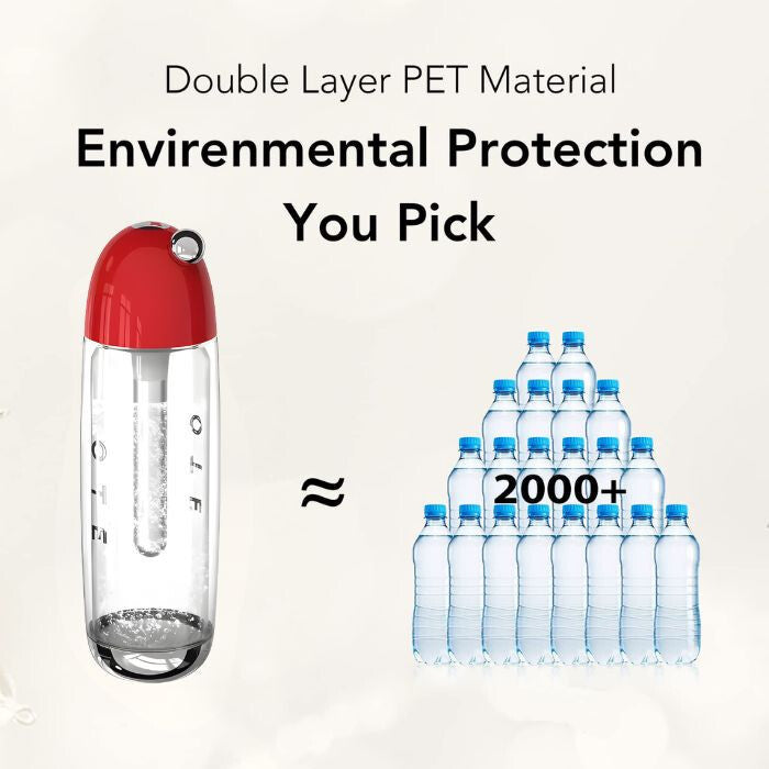 - Ekologické řešení: Dodává se s odolnou PET lahví s dvojitou vrstvou, která odolává tlaku i poškození. Vydrží více než 3000 použití a pomáhá snižovat plastový odpad.