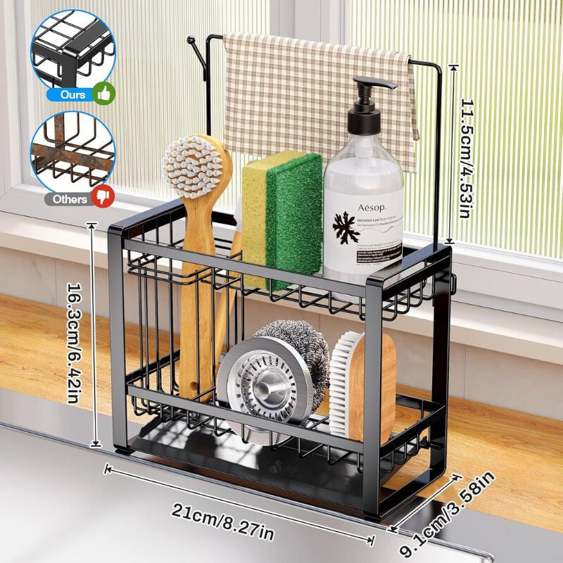 PKBD 2patrový Držák na Mycí Houbičky z Nerezové Oceli - Černý
