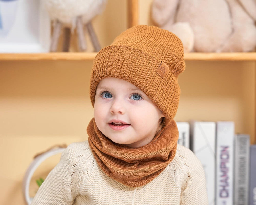 - AHAHA Čepice a Kruhový Šál Sada pro Malé Děti - Velikost S, Hnědá Barva