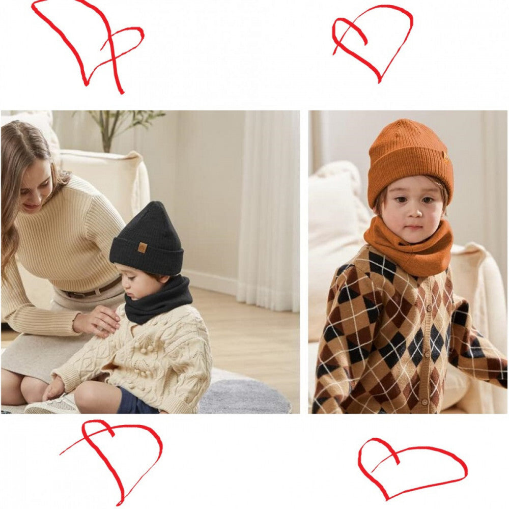 - AHAHA Čepice a Kruhový Šál Sada pro Malé Děti - Velikost S, Černá Barva