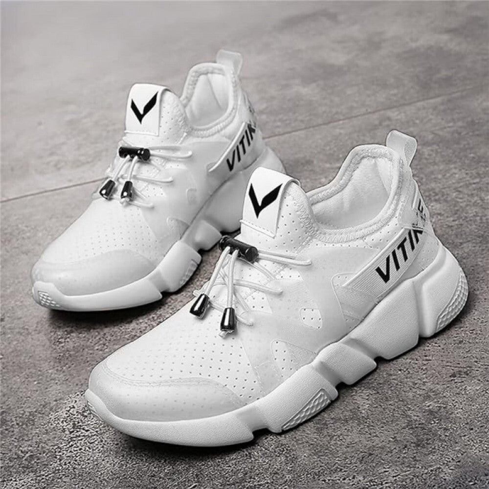 Bílé sportovní boty Vitike se stahovacími tkaničkami nabízejí stylový vzhled a pohodlí všem, kdo rádi žijí aktivním životním stylem, aniž by se vzdali módního vzhledu.