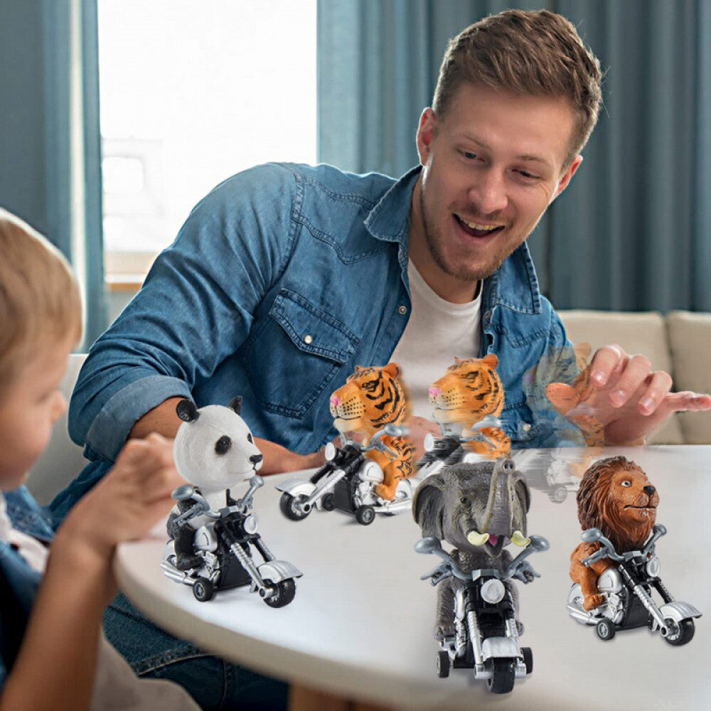 - Sada hraček Zvířecí motorkáři obsahuje čtyři různé, realisticky zpracované motorkářské figurky, které díky zpětnému natahovacímu mechanismu samy jezdí a přinášejí vzrušující dobrodružství do dětského pokoje.