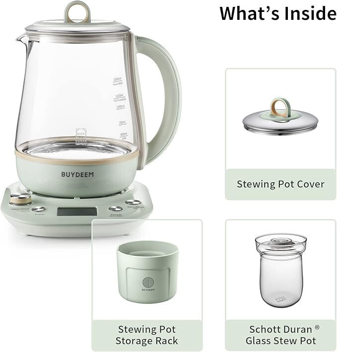 Buydeem K1594T a A206 sada elektrické rychlovarné konvice a ohřívače s vařičem (zelená)
