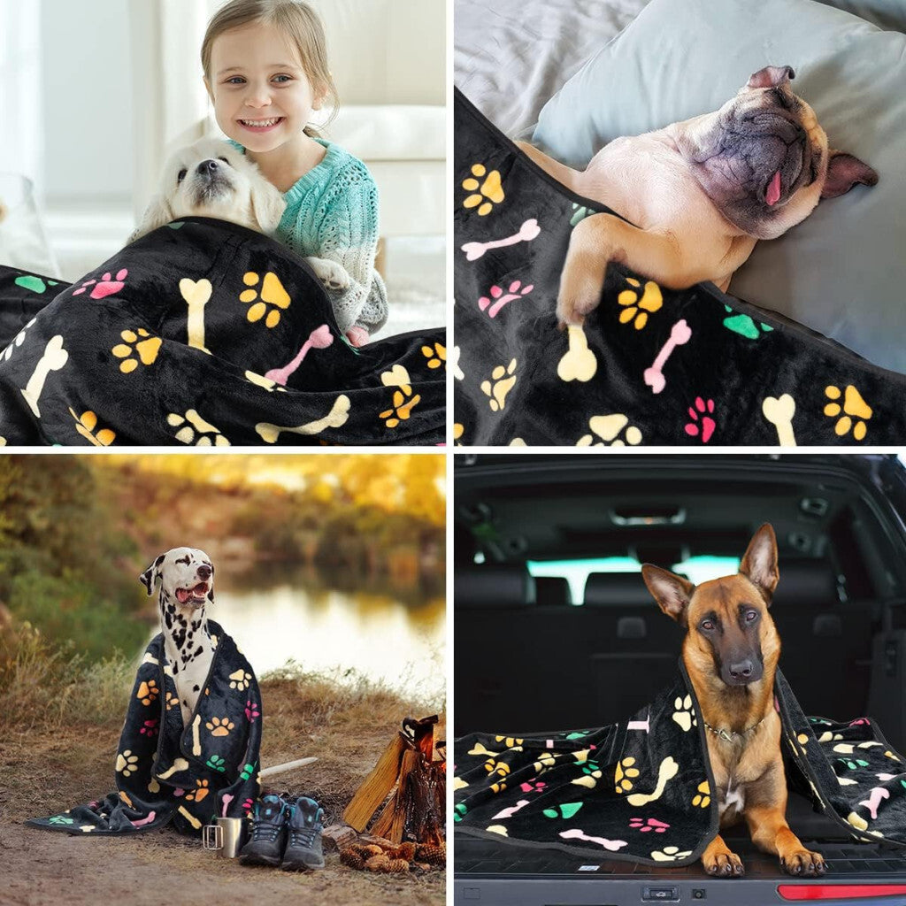 Měkký materiál: Dvousměrný, 100% polyester, s roztomilým vzorem kostí. Měkký, pohodlný a odolný. Dobře zpracovaná teplá fleecová deka, která se neloupe a nevybledne. Zajišťuje teplo a pohodlí vašemu mazlíčkovi jak v zimě, tak v létě.