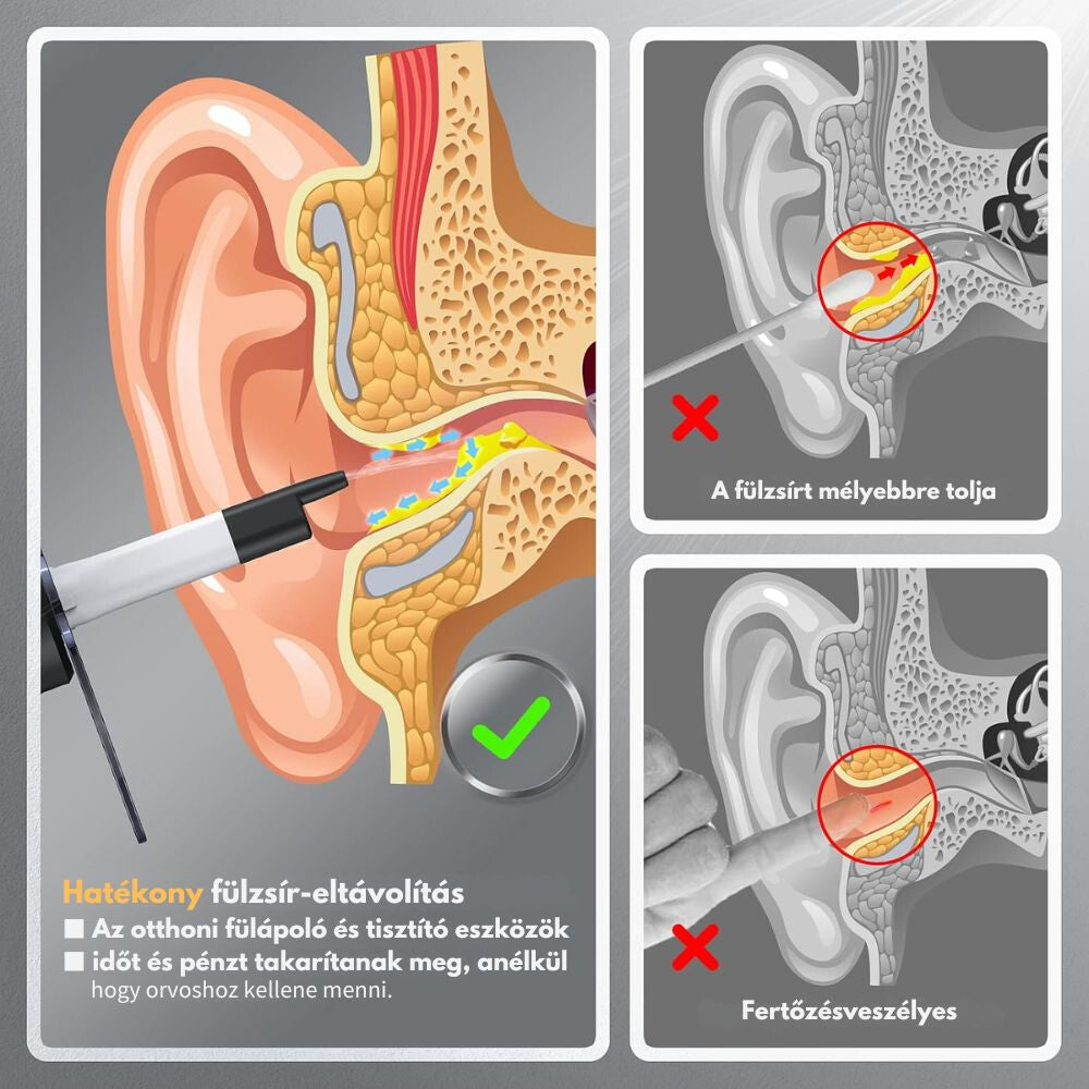 - Elektrický Odstraňovač Ušního Mazu s Kamerou a LED Osvětlením – Sada na Čištění Uší se 4 Stupni Tlaků