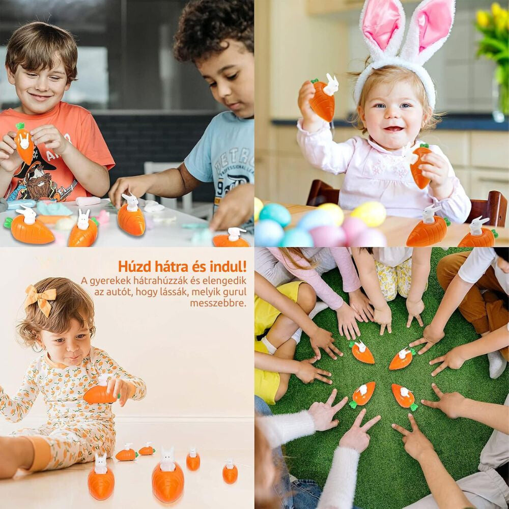 - Natahovací Hračka Zajíček Autíčko Set pro Děti – 8 ks Hraček Autíček s Mrkví, Velikonoční a Rozvojová Hračka