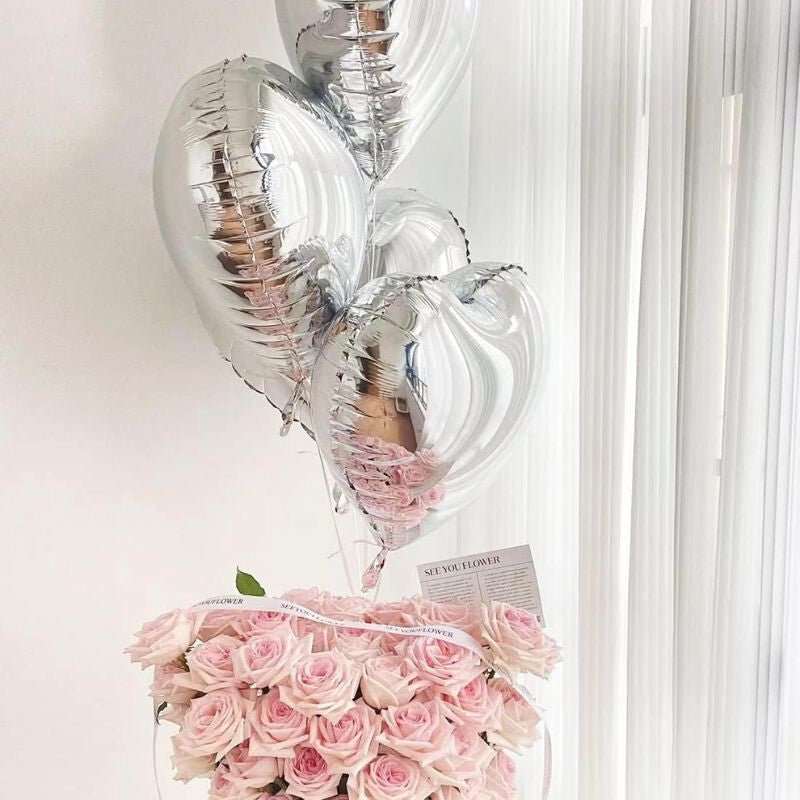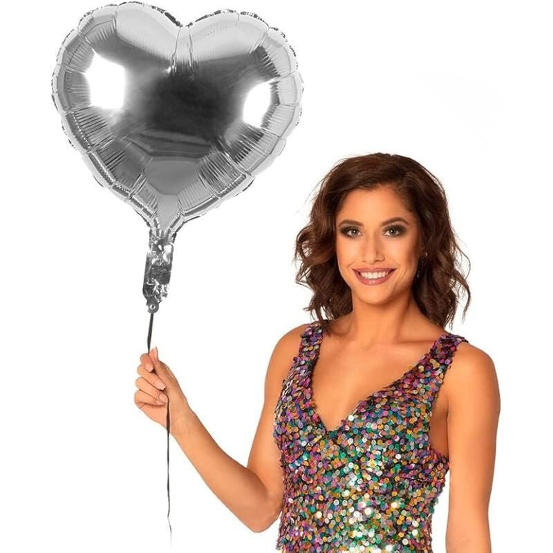 - Fóliové balónky ve tvaru srdce stříbrné 30 ks 40x45 cm