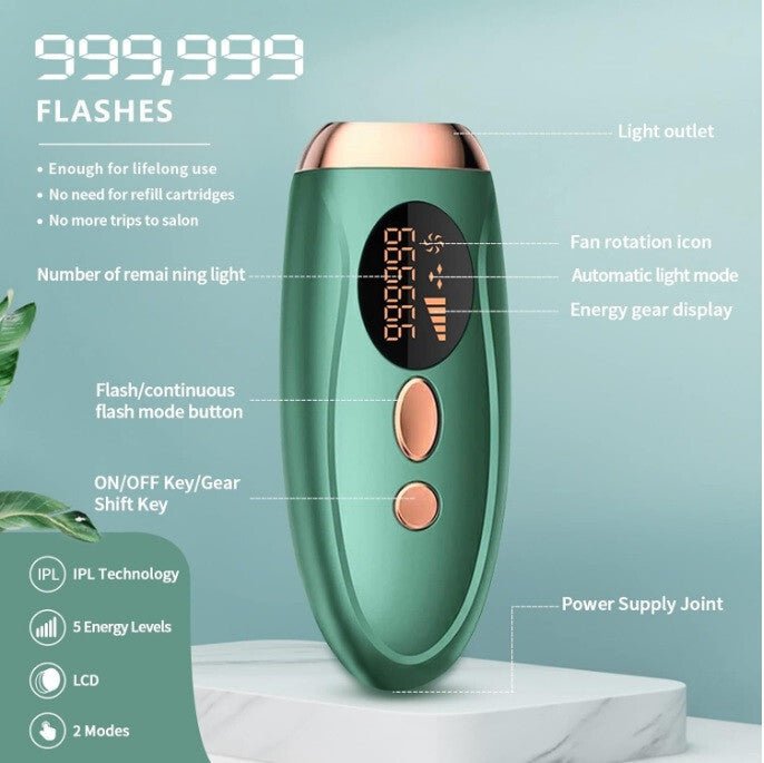 IPL Domácí epilační přístroj v barvách smaragdově zelená a bronze - účinný a pohodlný