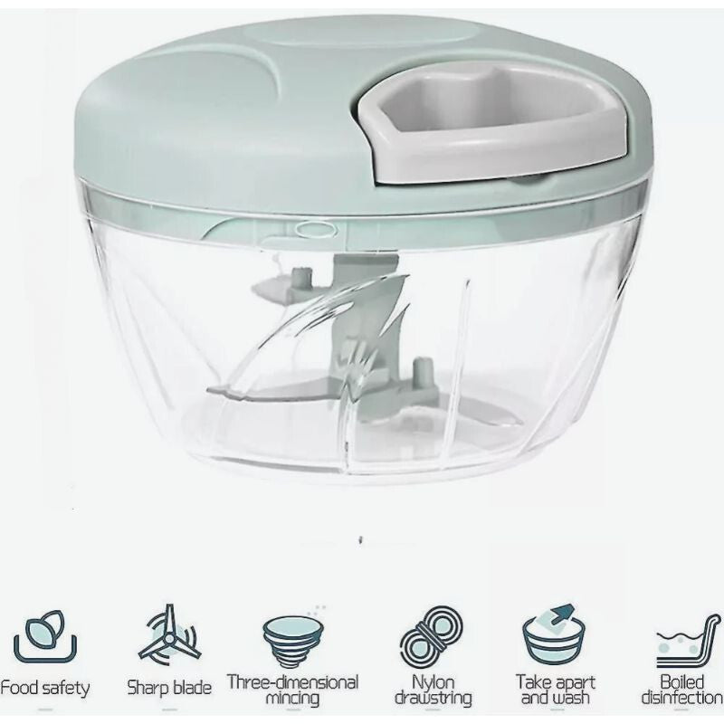 Tento ruční sekáček na zeleninu a ovoce je velmi užitečný nástroj, který se osvědčí v každé kuchyni. Jednoduchý mechanický pohon zajišťuje rychlé a efektivní sekání bez potřeby elektřiny, takže ho můžete používat kdekoli. Díky pohonu na šňůru je zařízení ideální na kempování, cestování i každodenní použití. Kompaktní design a snadná údržba ještě více usnadňují používání.