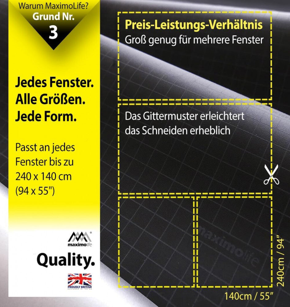 - Unikátní vzor mřížky: Výrazně usnadňuje řezání jakéhokoli rozměru a tvaru; dostatečně velký pro okna o rozměrech 240 x 140 cm