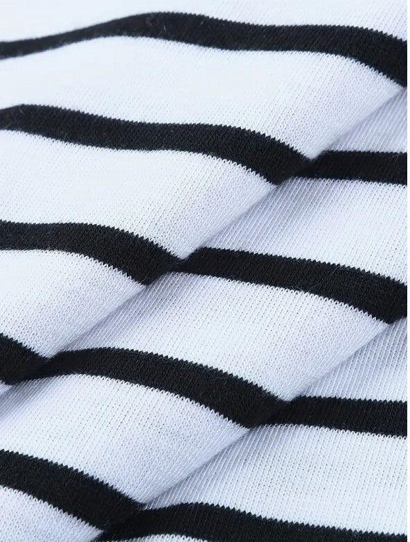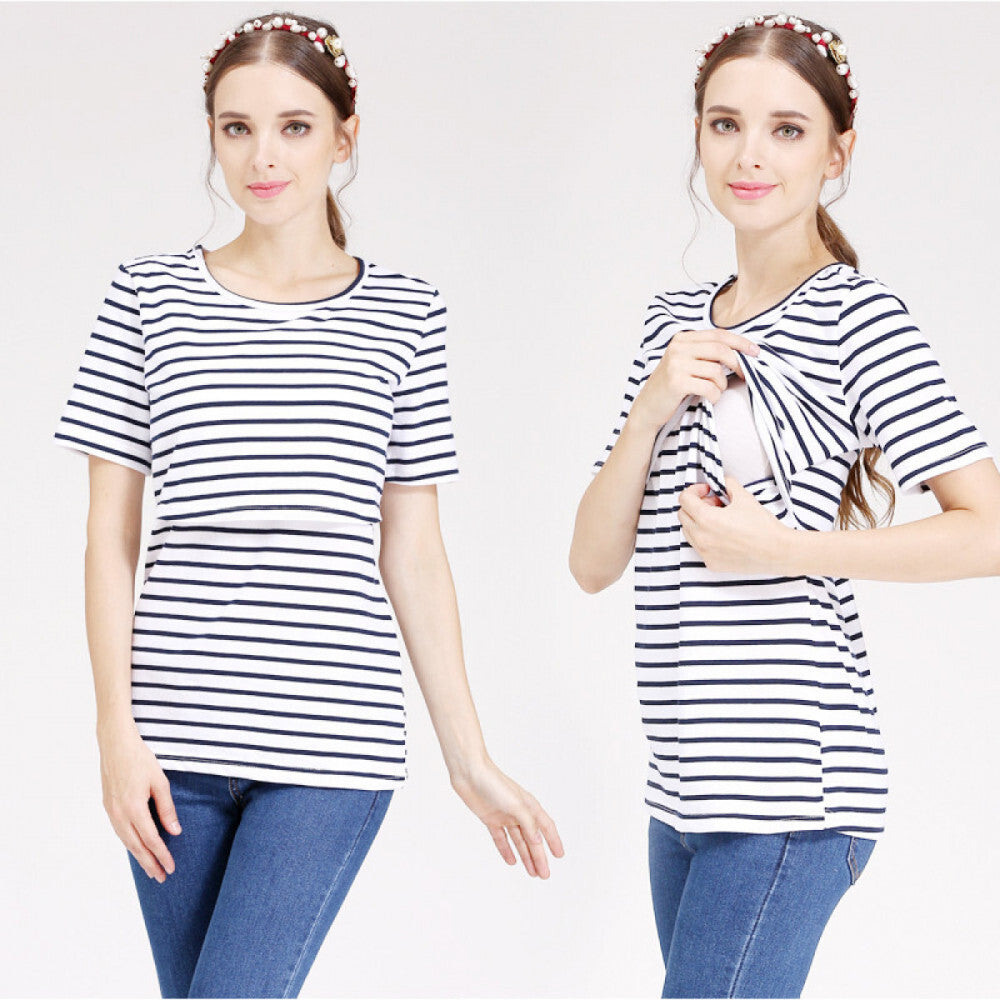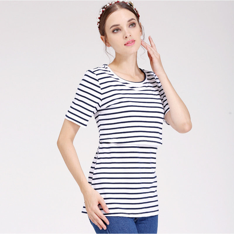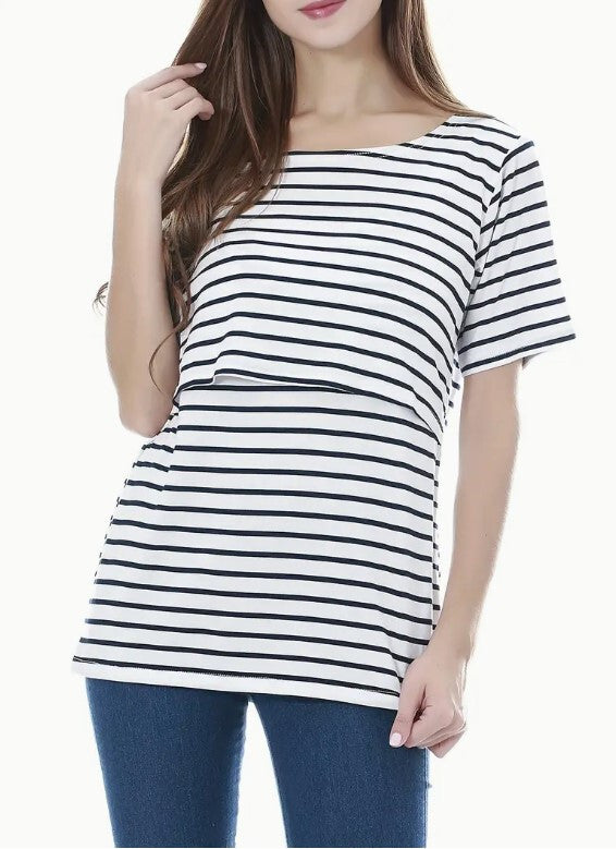 Dámské těhotenské kojicí tričko, Krátký rukáv (Černo-bílé pruhované) S