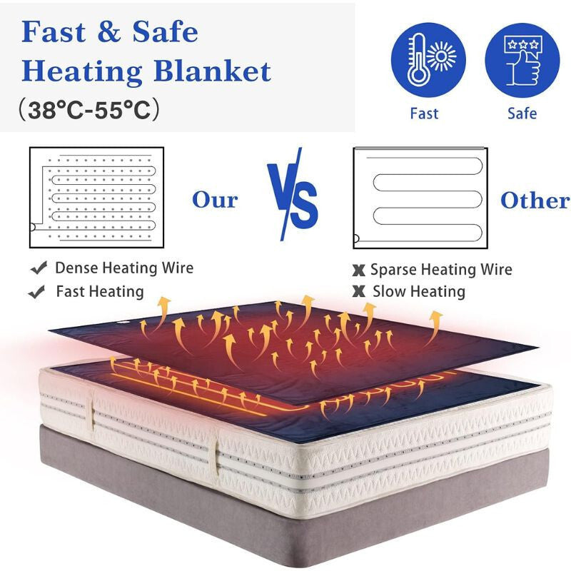 - Tato elektrická přikrývka má šest nastavitelných teplotních stupňů, takže si snadno najdete tu nejpohodlnější teplotu od 38 °C až do 50 °C. Praktický 10hodinový časovač automaticky vypne deku, takže si můžete v klidu odpočinout, aniž byste se museli obávat spotřeby energie nebo přehřátí.