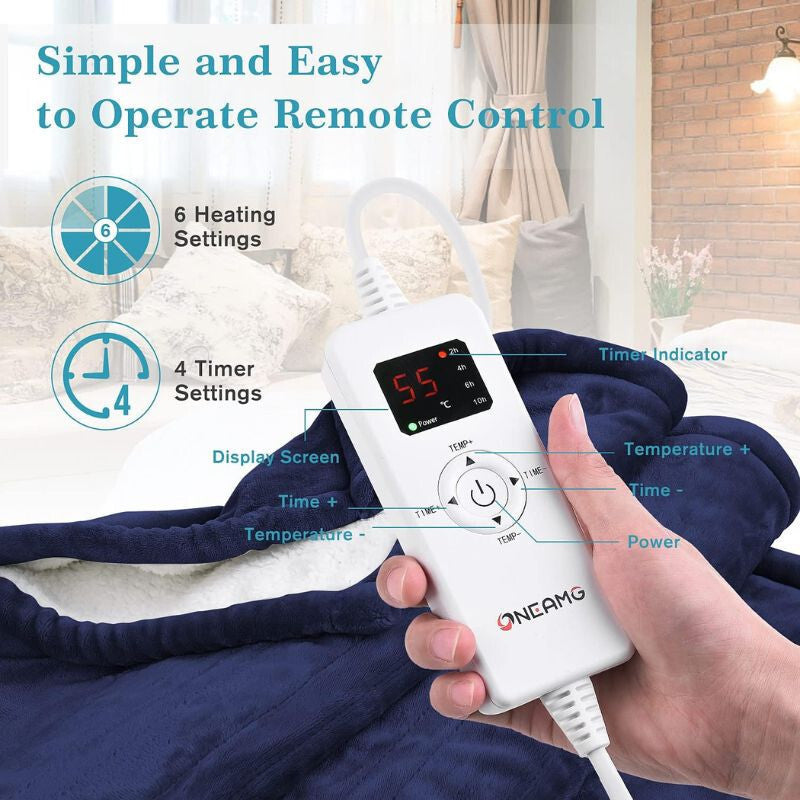 - OneAmg elektrická vyhřívaná deka – flanelová teplá přikrývka 160 x 180 cm, modrá