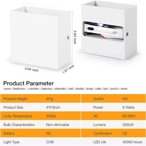 . Snadná instalace - Připojitelné na AC napájení, balení obsahuje obě nástěnná svítidla.