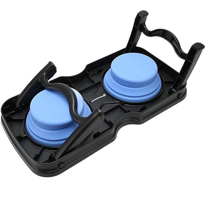 - 4everPet Skládací Vyvýšená Miska pro Psy – Modrá a Tmavě Šedá, 700 ml + 700 ml, Přenosná, Odolná a Praktická Volba pro Domov i Cesty