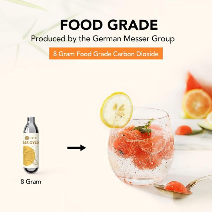 CO2 plynové kazety OTE mají kapacitu 8 g, která zaručuje dokonalou perlivost pokaždé. Tyto kazety jsou kompatibilní s většinou oblíbených výrobníků sodovky, takže je lze snadno a bezpečně používat. Kazety obsahují potravinářský oxid uhličitý, který zaručuje čistou a čerstvou chuť. -
