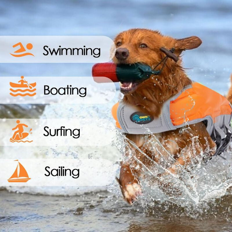 - Vysoká viditelnost a bezpečnost: Jasně oranžová barva a reflexní pásky pomáhají, aby byl váš pes ve vodě vždy dobře viditelný, což zvyšuje bezpečnost, zejména za špatných světelných podmínek nebo v noci.
