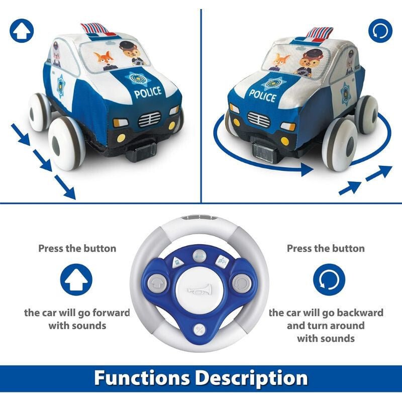 - Měkká Hračka Autíčko na Dálkové Ovládání pro Miminka s Hracím Kobercem (Policejní Auto)