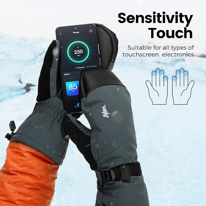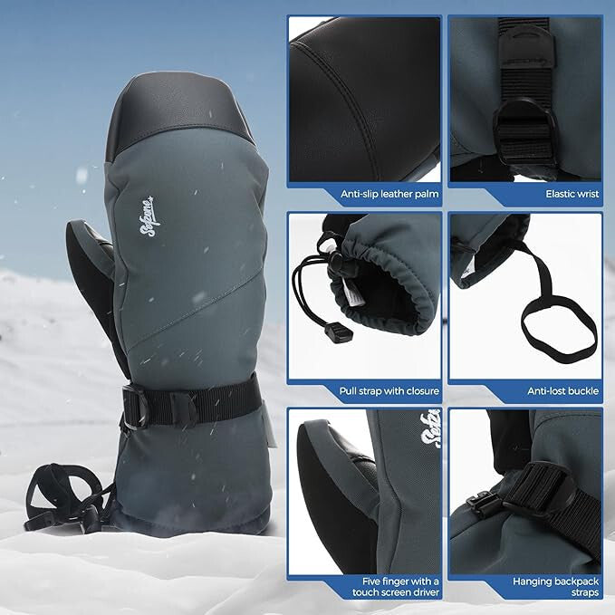 - Sefzone Dospělé Dotykové Zimní Voděodolné Jednoprsté Lyžařské Rukavice XL