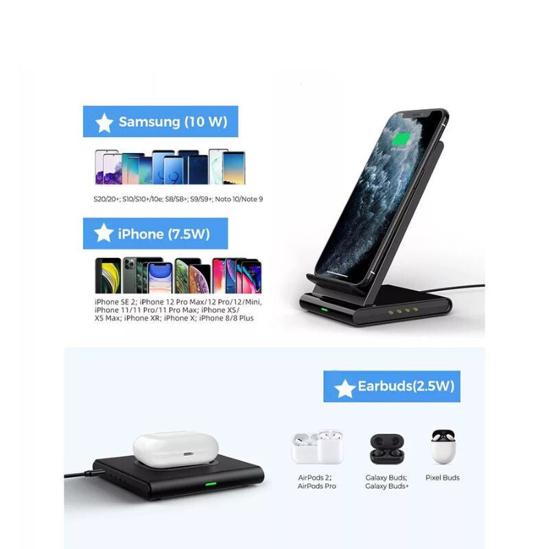 - Tato dvojitá bezdrátová nabíjecí stanice je perfektní volbou, pokud hledáte rychlé, bezpečné a jednoduché řešení nabíjení pro dvě zařízení. Široká kompatibilita, design přátelský k pouzdrům a funkce bezpečného nabíjení zajišťují, že je ideální i pro každodenní použití.