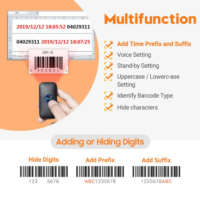 - Tera 5200C Mini Bluetooth čtečka čárových kódů je ideálním řešením pro všechny podniky, které hledají efektivní, přenosný a přesný sběr dat pro každodenní použití.