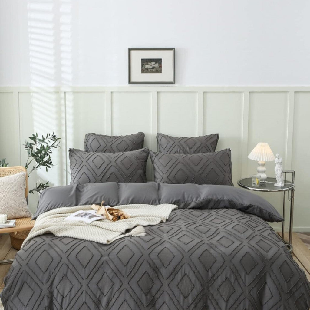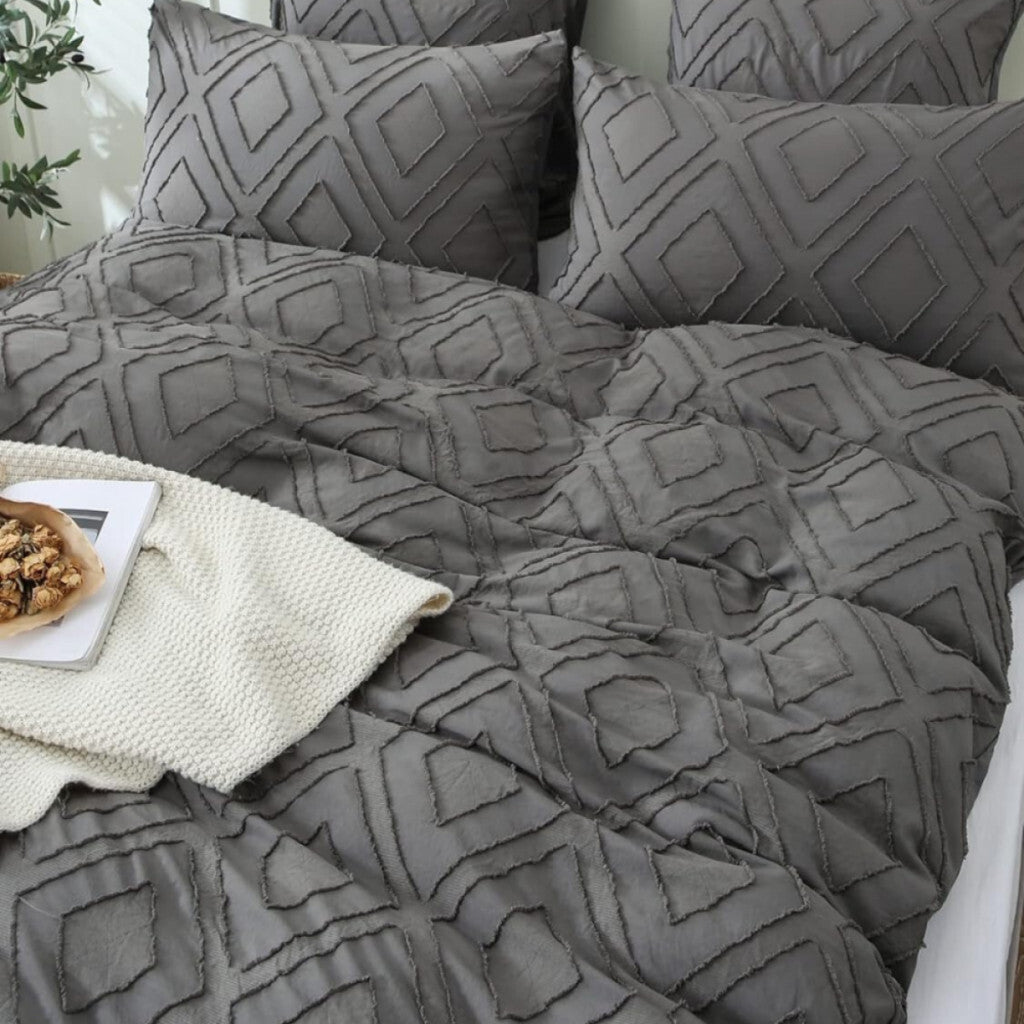 Povlak na přikrývku má na všech čtyřech rozích úchyty, které lépe zabraňují posunu přikrývky nebo peřiny.