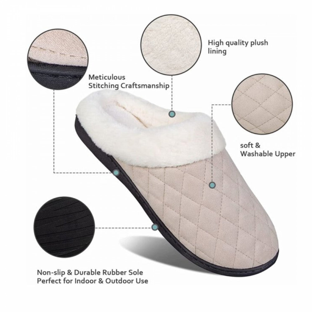 - Ultraideas Zimní papuče s paměťovou pěnou – Velikost 44–45, Béžové, Teplé domácí pantofle