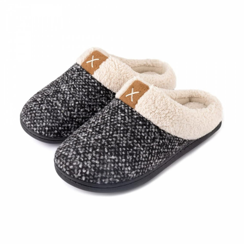 - ULTRAIDEAS Zimní papuče s paměťovou pěnou – Černobílé, velikost 44–45, Teplé domácí pantofle