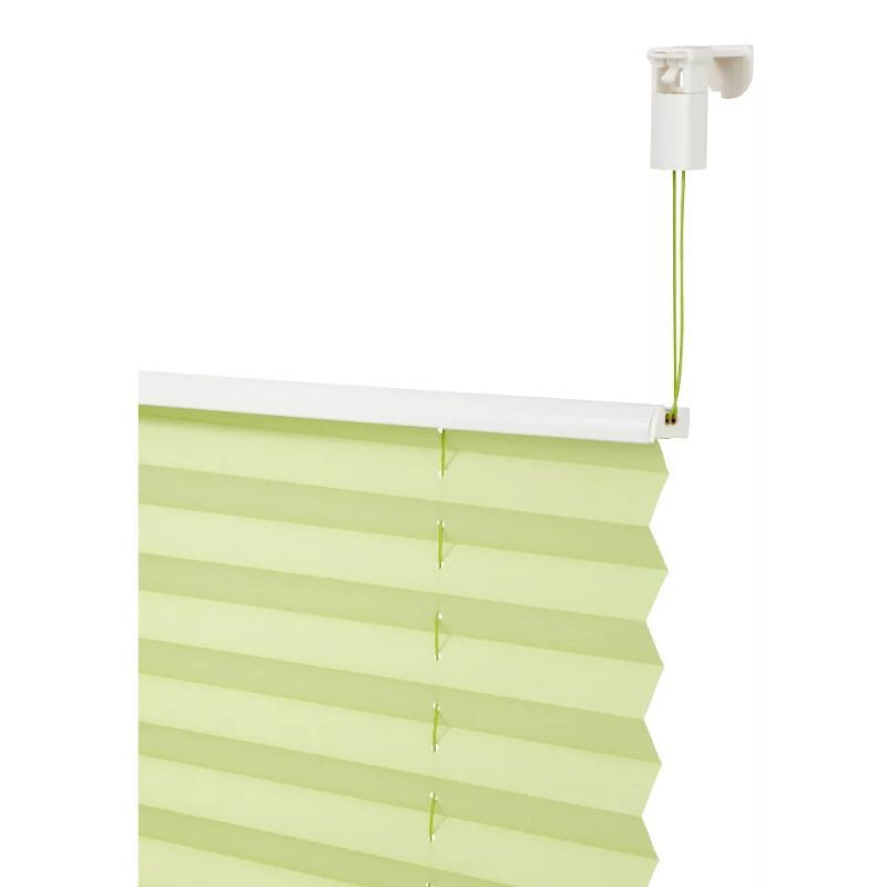 Toto je světle zelené plisované žaluzie Perfektní volba, pokud chcete jednoduše spojit design, ochranu proti slunci a pohodlí – bez kompromisů.