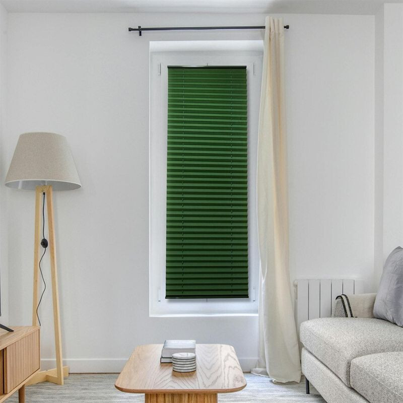 Tmavě zelená barva vytváří elegantní a přirozený efekt, harmonicky se hodí do moderních, klasických nebo i rustikálních stylů místností. Plisé je vynikající volbou do obývacího pokoje, ložnice, pracovny nebo dokonce kanceláře.