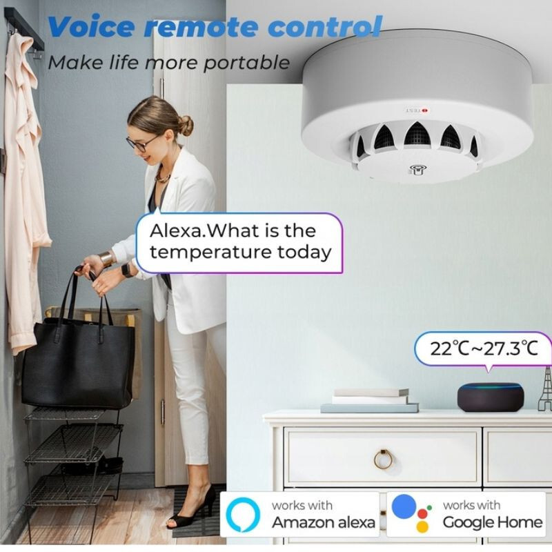 – Kromě zvukového alarmu s hlasitostí 80 dB také odesílá oznámení prostřednictvím aplikací Tuya a Smart Life, které jsou kompatibilní se systémy Alexa a Google Home.
