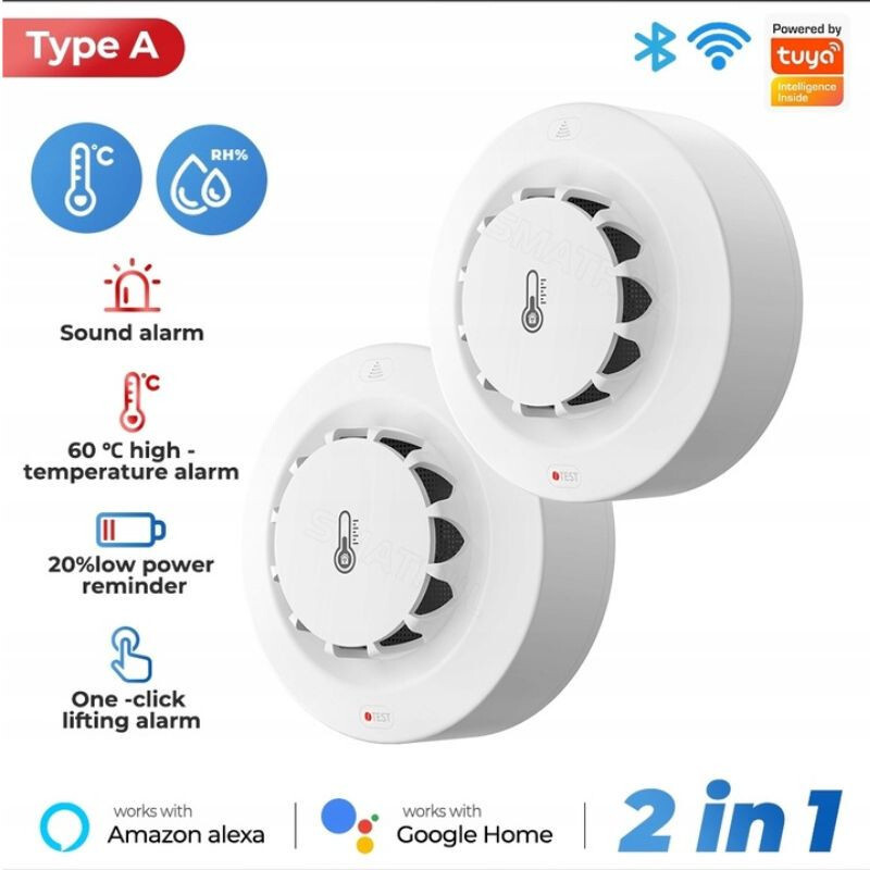 Chytrý detektor kouře, teploty a vlhkosti - s měřičem - TUYA WiFi, 2ks