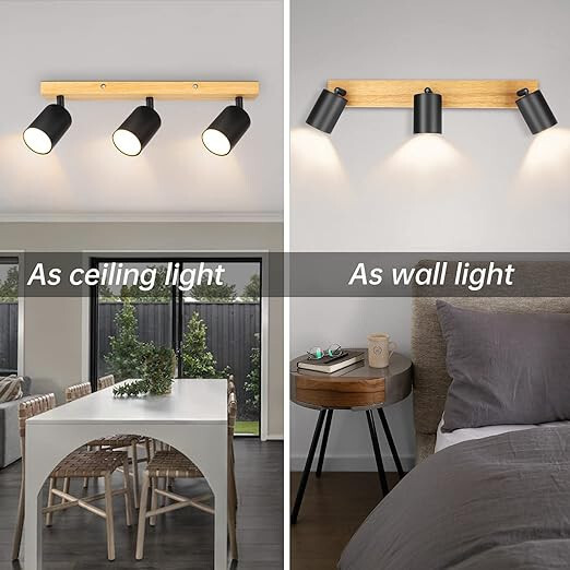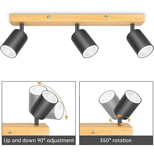 Otočné, nastavitelné 3směrné LED stropní bodové světlo Kambo (černé a dřevěné)
