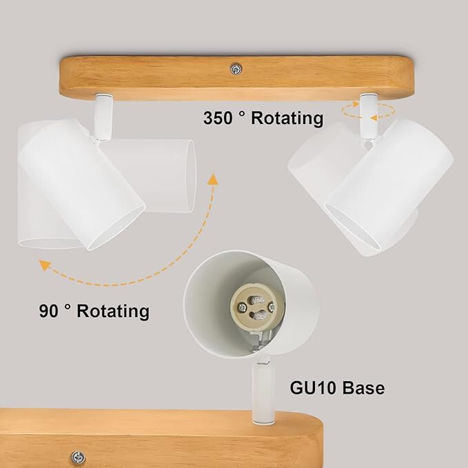 Informace o produktu:Vysoká kvalita: Masivní dřevěná základna a kvalitní železo v kombinaci s bílou barvou zajišťují dlouhodobé používání stropního bodového svítidla. Stylový design: Kombinace základny v barvě přírodního dřeva a matného bílého kelímku dodává stropnímu svítidlu jednoduchý a elegantní vzhled, který může doplnit váš domov. Patice GU10: Lampa neobsahuje žárovky a stmívače, ale je kompatibilní se všemi žárovkami GU10 (maximální výkon na žárovku: 50W). Můžete ji kombinovat s různými typy žárovek GU10 a vytvořit tak retro/pohodlnou atmosféru. Otočný bílý reflektor: Každou hlavu reflektoru lze otočit horizontálně o 350° / vertikálně o 90°, např. nasměrované do přední části / pultu / skříně, aby rozsvítil váš život. Lehká instalace: Potřebné pokyny a příslušenství zajistí rychlou instalaci stropního svítidla GU10. Součástí dodávky jsou speciální černé přísavné kotouče pro usnadnění výměny žárovek.