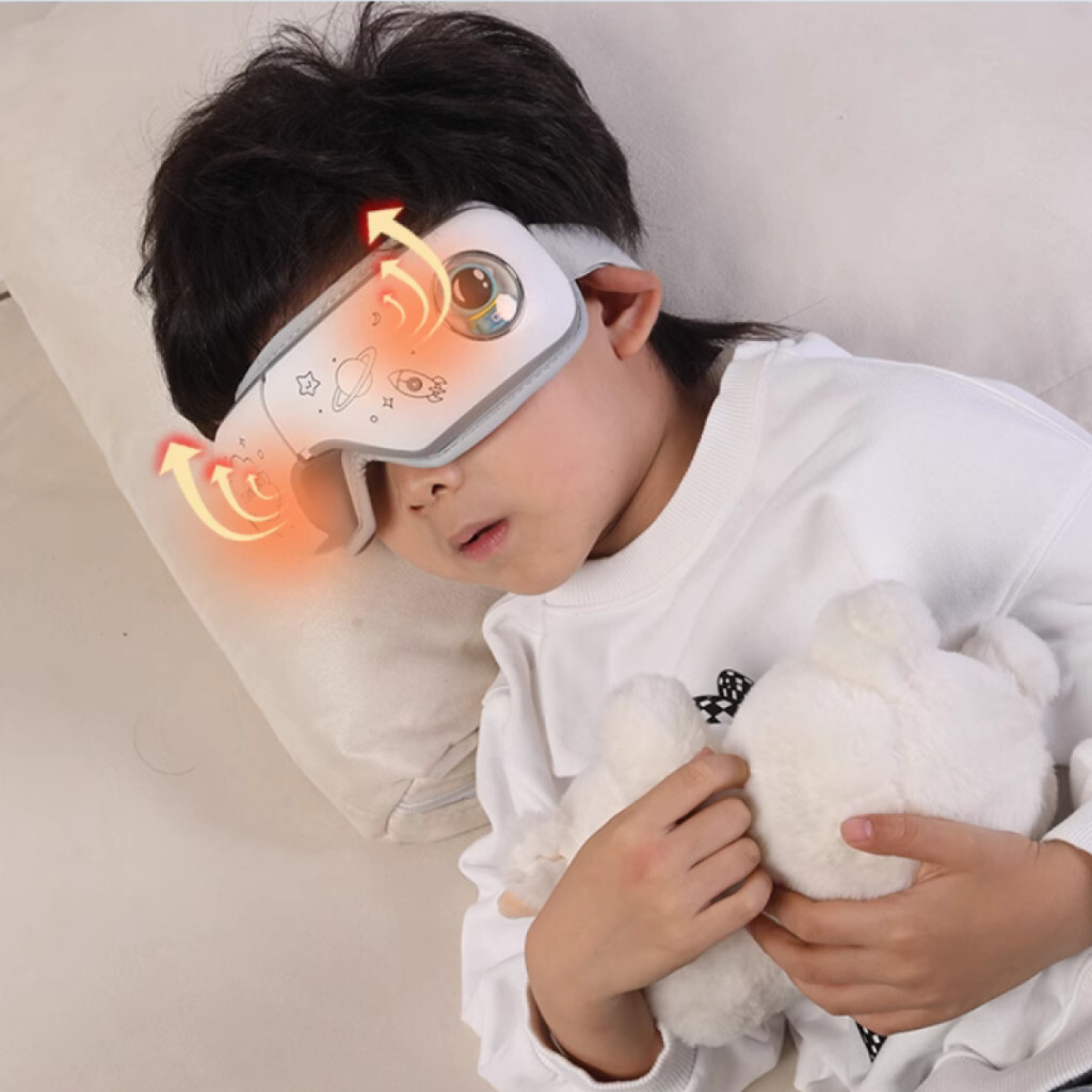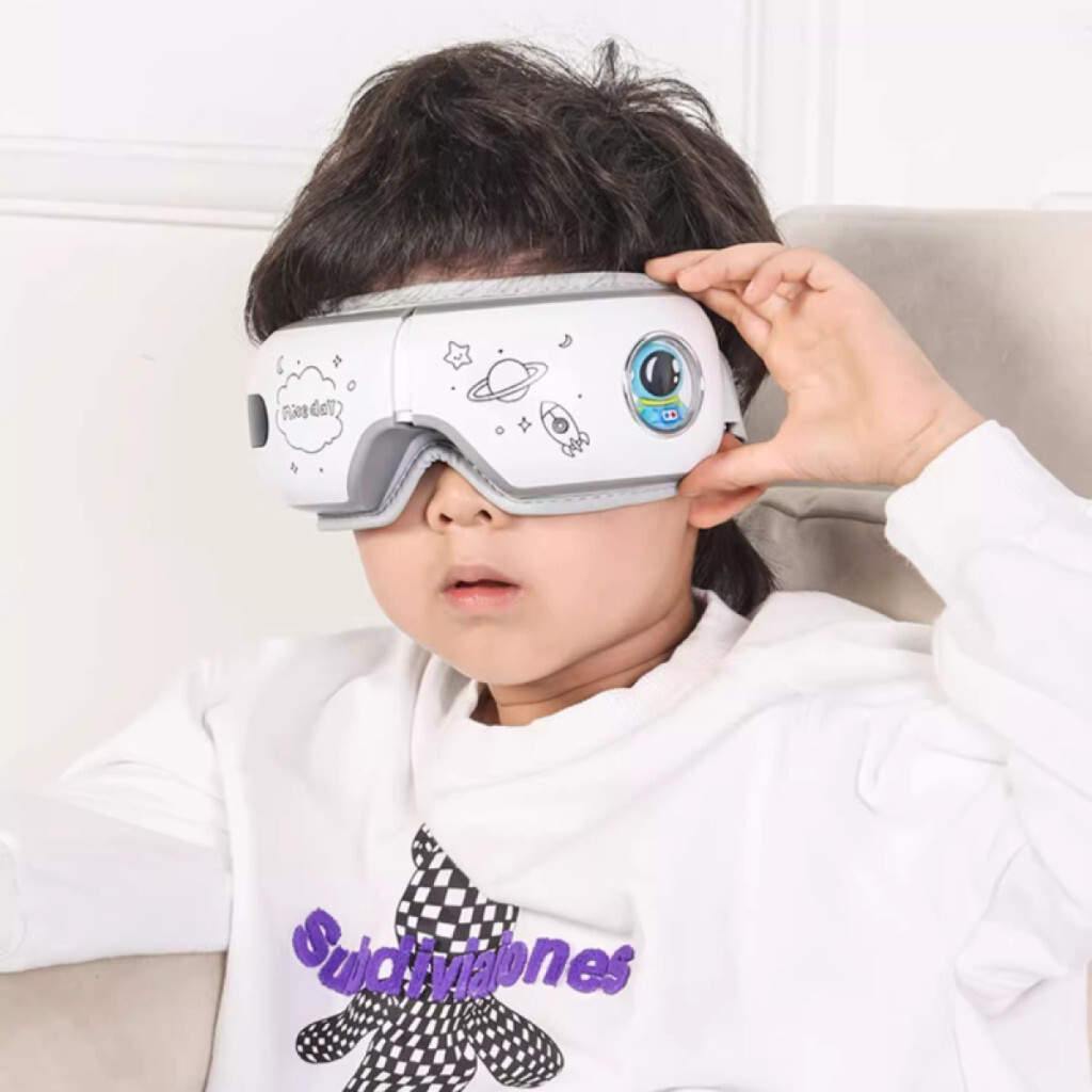 Dětský masážní přístroj na oči Astronaut – 3 režimy: vibrace, vyhřívání, hudba