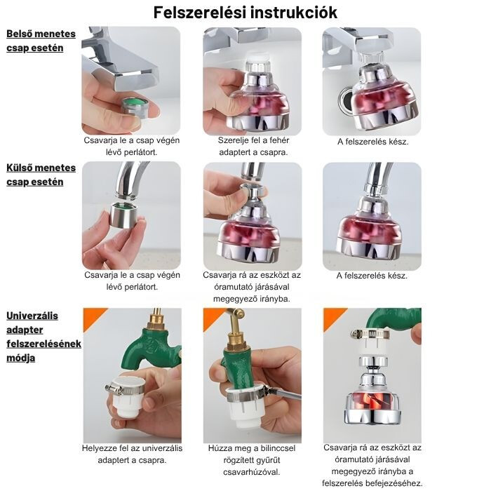 Lze jej nainstalovat na většinu domácích kohoutků jedním tahem, nevyžaduje žádné speciální nářadí ani odborné znalosti.