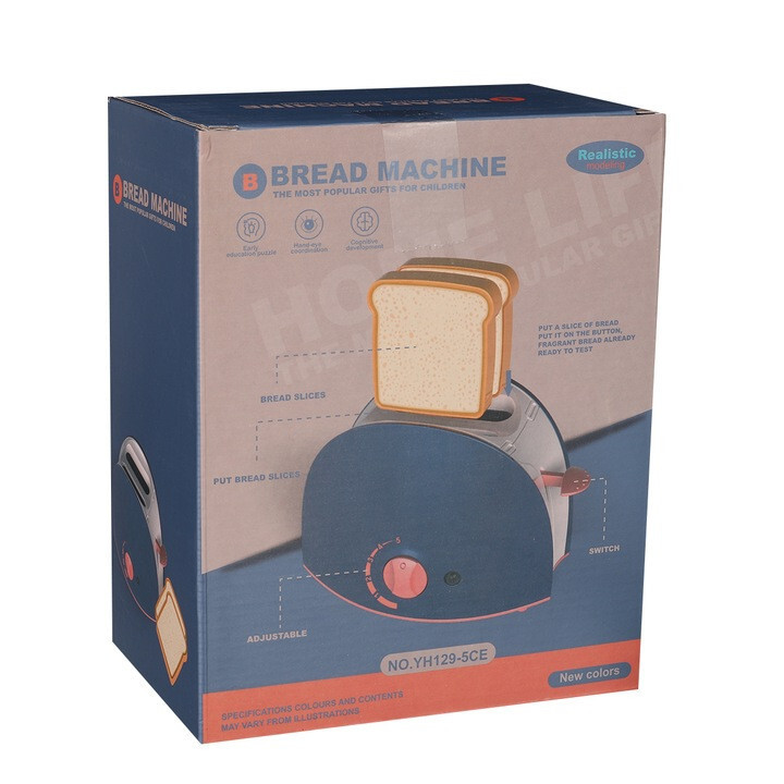 – 1 hračkový toustovač, 2plastové krajíce chleba.