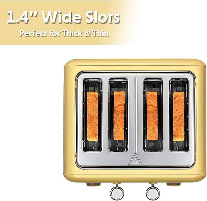 Topinkovač Buydeem DT640E – 4 plátky, citronově žlutý retro design
