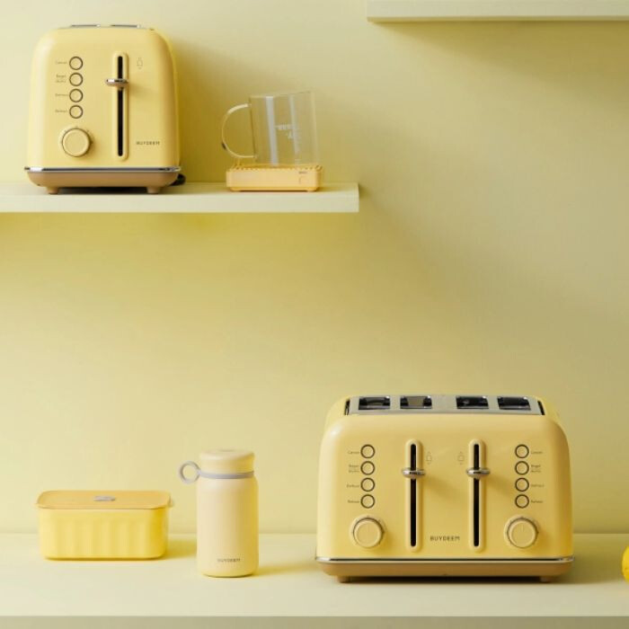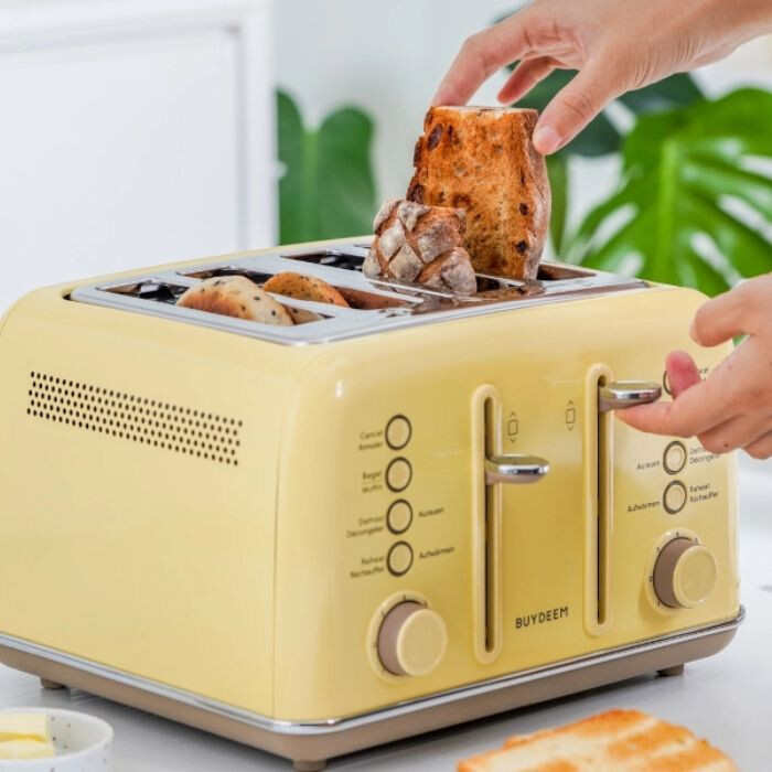 Buydeem DT640E Toustovač – 4 plátky, citronově žlutý retro design Uživatelská příručka